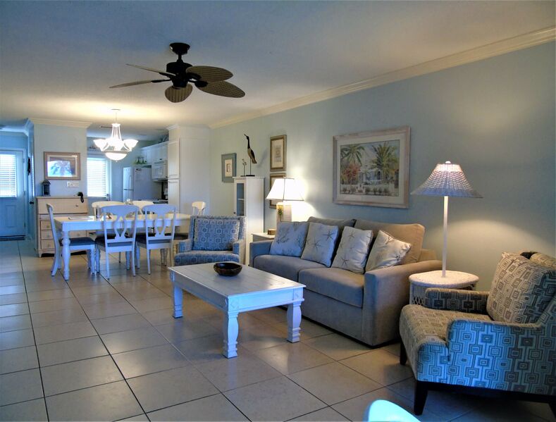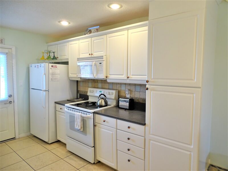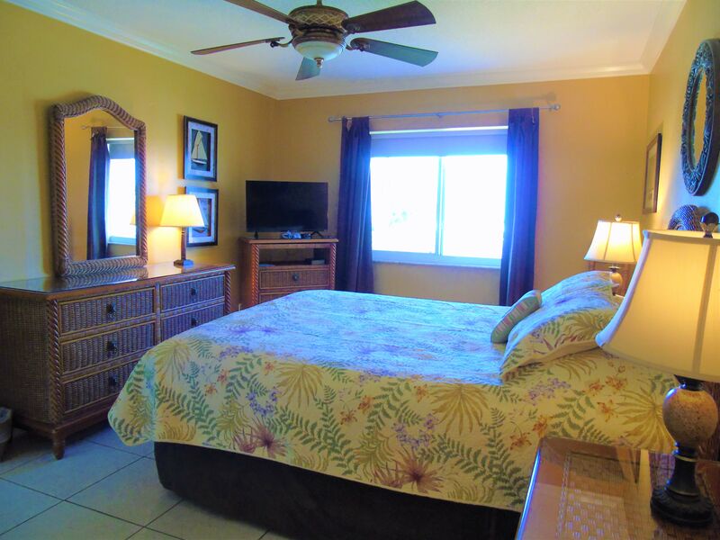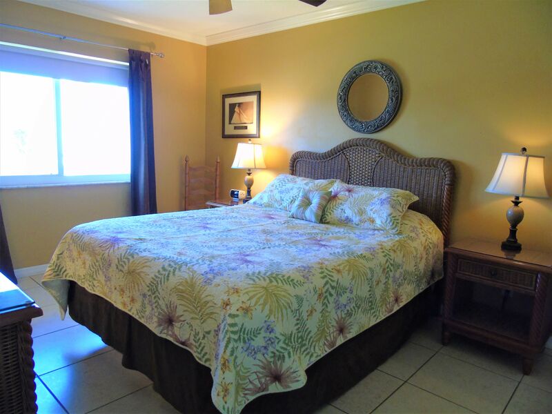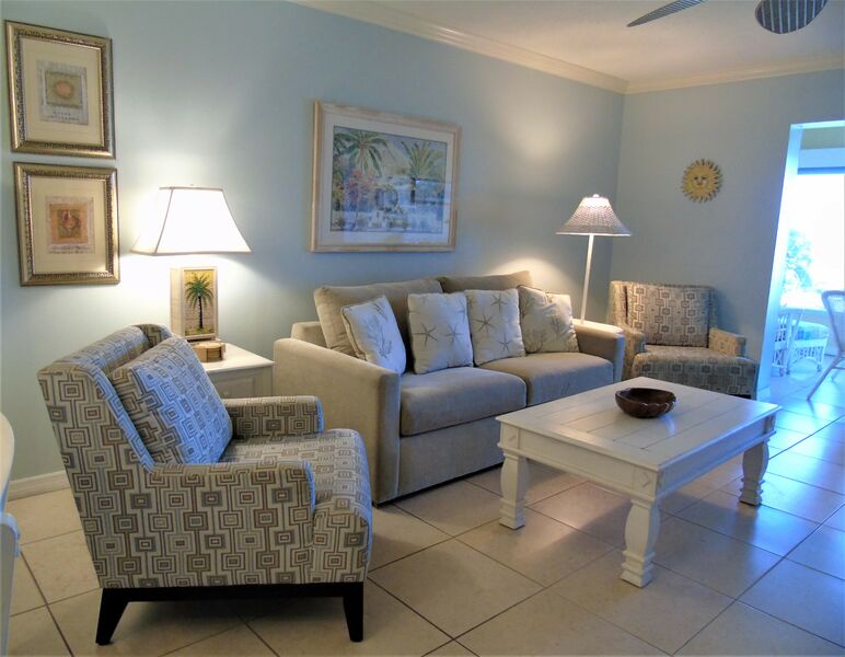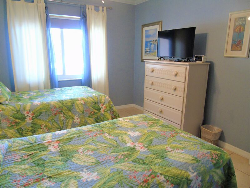 Beach chairs and umbrellas are provided in your private storage locker. This condo sleeps six and has a queen bed in the master bedroom, two twin beds in the guest room, and a queen sofa bed in the living room.