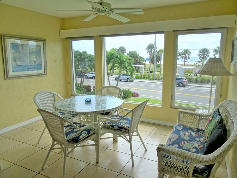 This bright and breezy condo is fully equipped and ready for you. You will love the open floor plan, which allows a beach view from the moment you enter, directly across the street from the white sands of beautiful Siesta Key and less than a mile from the famed Siesta Key Village. It is the perfect location. Enjoy breakfast in the air-conditioned sunroom, and the huge picture window lets you watch the beach activities begin. The magnificent sunsets over the ocean at day's end will take your breath away!
