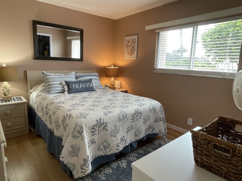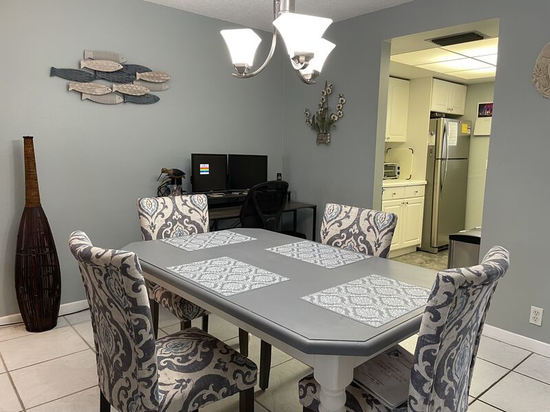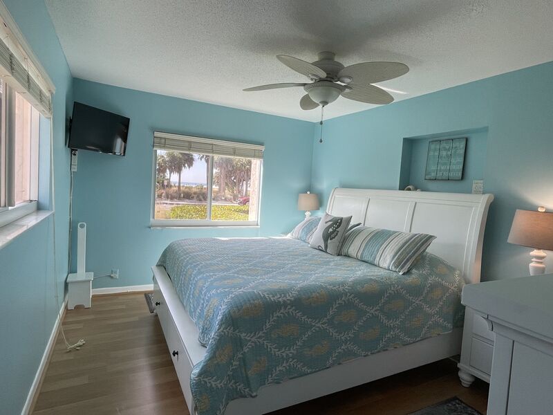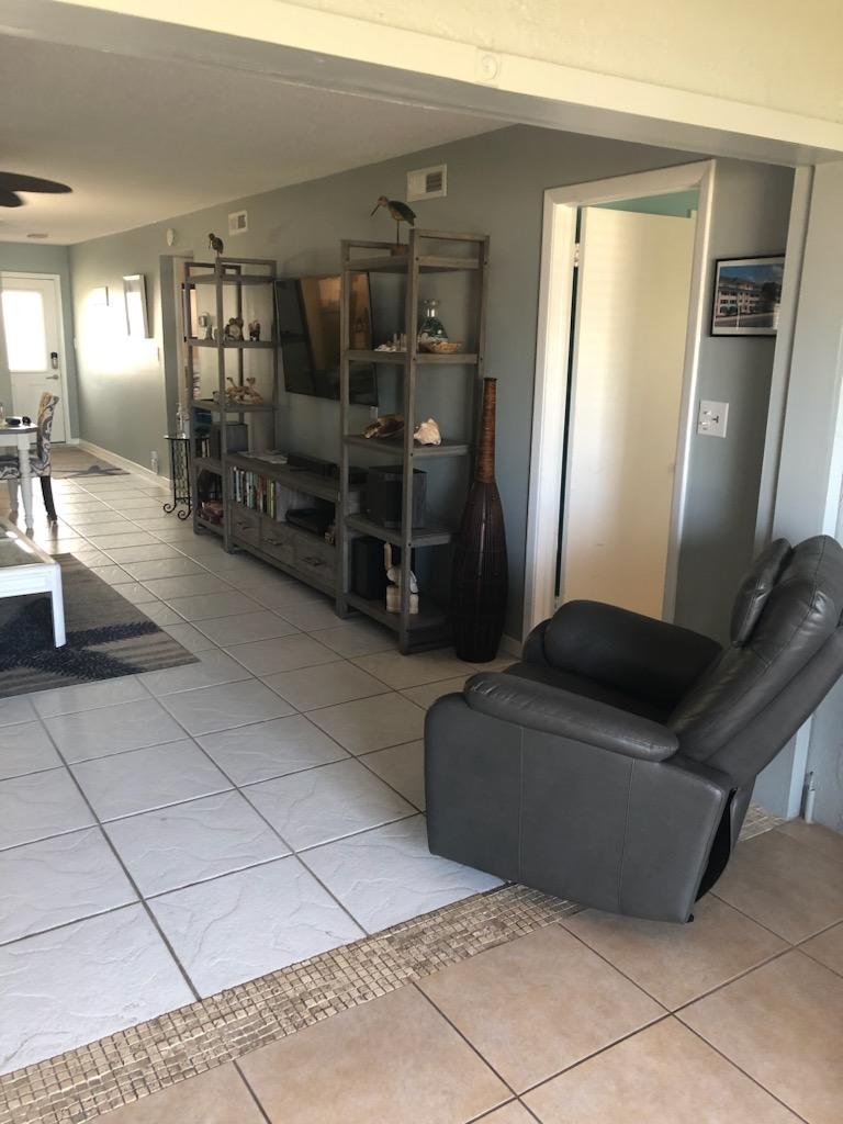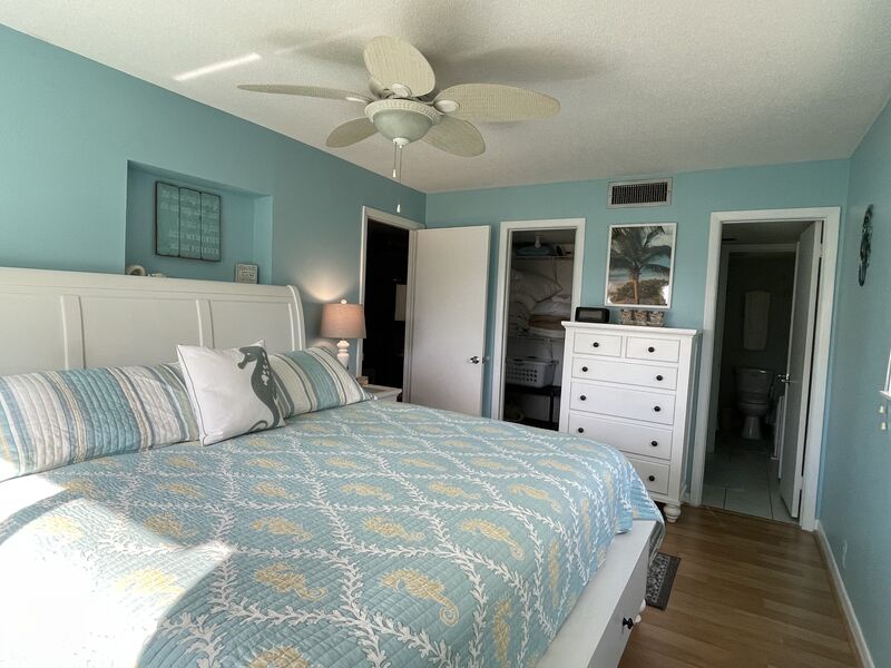 Directly across from Beach Access 11, this two-bedroom, two bathroom open floor plan condo will fill you with good vibes. A fully equipped kitchen has all your needs. The living room features leather power recliners and a smart TV. The master bedroom features a king bed a walk-in closet, and a smart TV. The guest bedroom and bath create privacy for visitors and feature a queen bed and 32-inch TV. Private secured WIFI. A private beach locker has all your beach needs, including chairs, an umbrella, and a wagon.