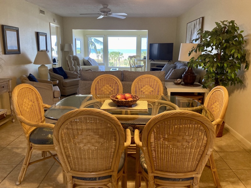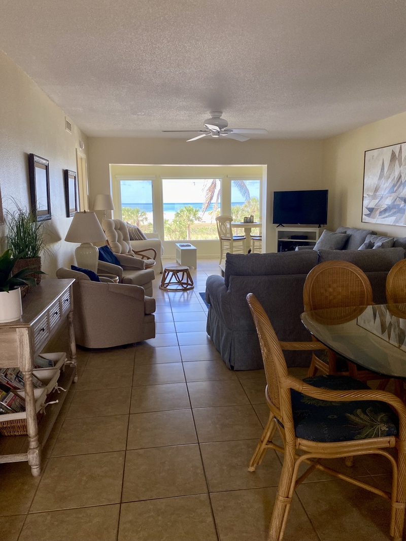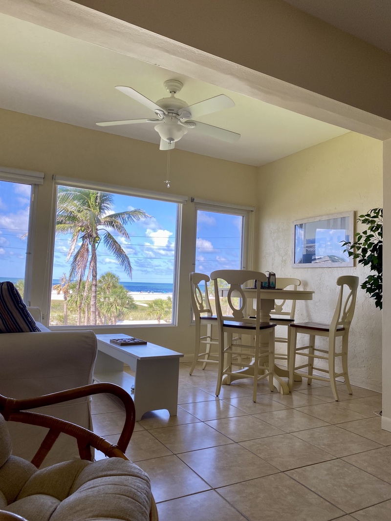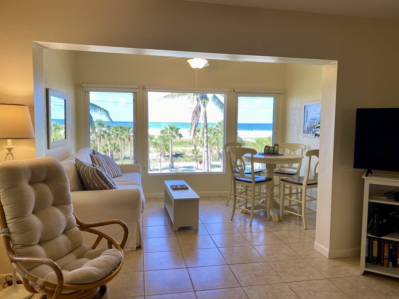 Enjoy stunning views of the beautiful white sands of Siesta Beach and gorgeous sunsets from your picture window of this 2 bedroom 2 bathroom 3rd floor condo. This family friendly beach view condo has everything you will need for a carefree, comfortable stay in Paradise. Award winning Siesta Beach is just steps away and a 10 minute walk finds you in heart of the famed Siesta Key Village. The updated fully equipped kitchen looks out over the open concept dining, living and sunroom area. Wake up to an ocean view in the King size master bedroom and enjoy the newly renovated tile and granite master bath. The guest bedroom has a queen size bedroom and full size bathroom. Private Secured WIFI and TV's in every room. Your own beach locker is equipped with a beach buggy, chairs, umbrellas, beach toys and games. You will love spending your vacation in this wonderful condo. Come visit!